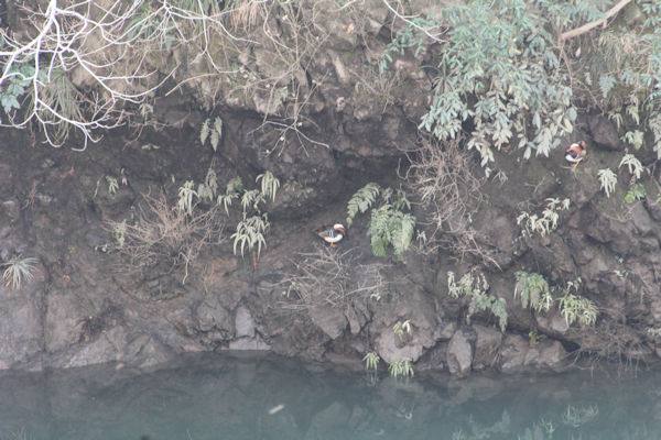久しぶりのあいかわ公園だったが、オシドリの数は少なそうだ。谷底の対岸際にいるので、遠くて暗く、証拠写真レベルにしかならなかった。